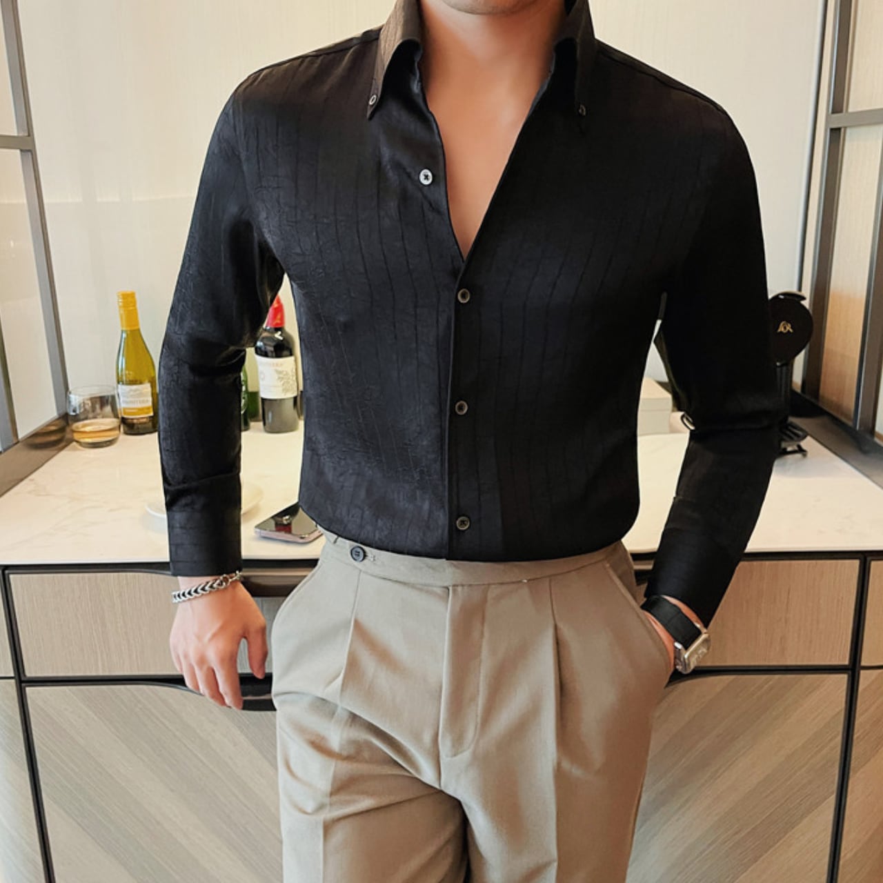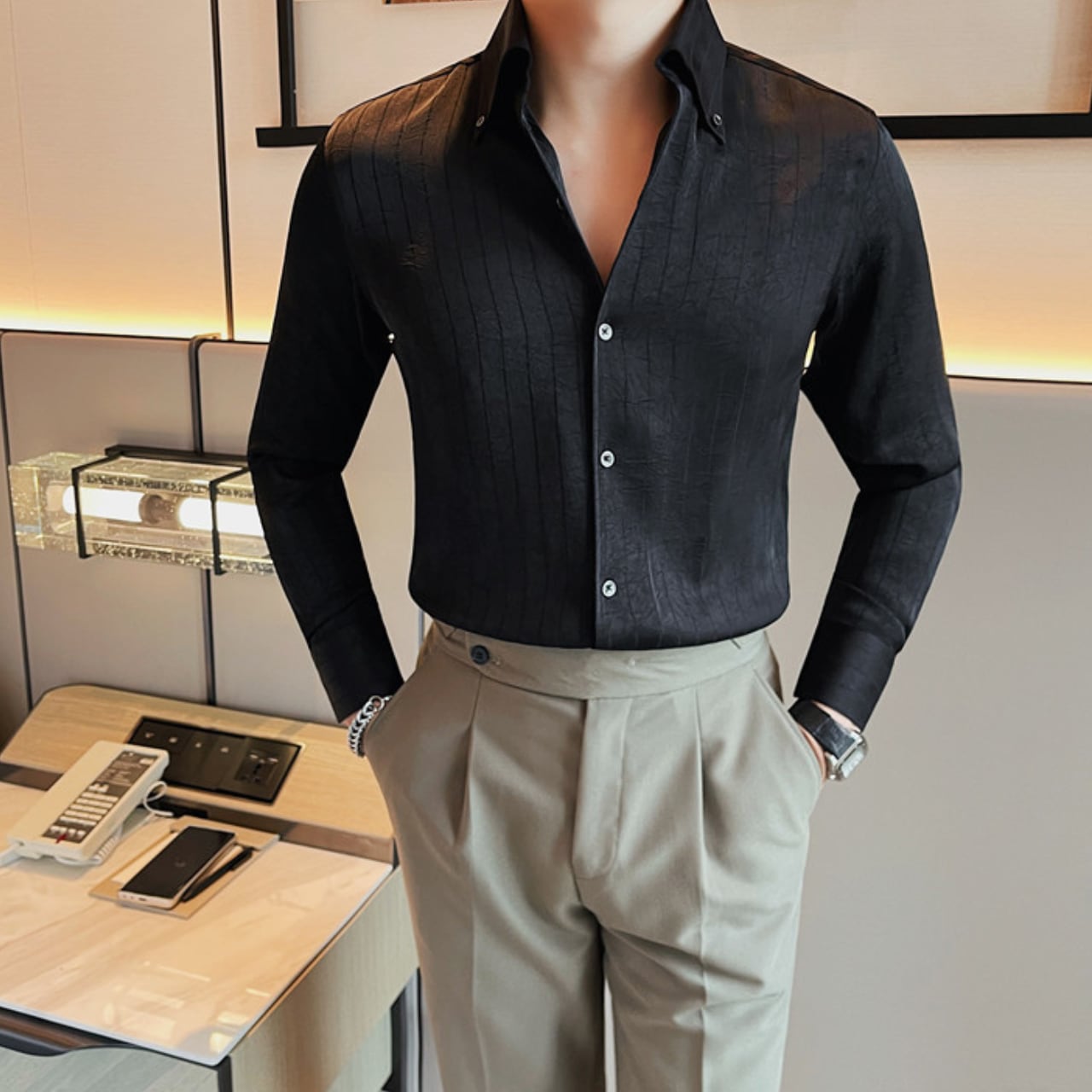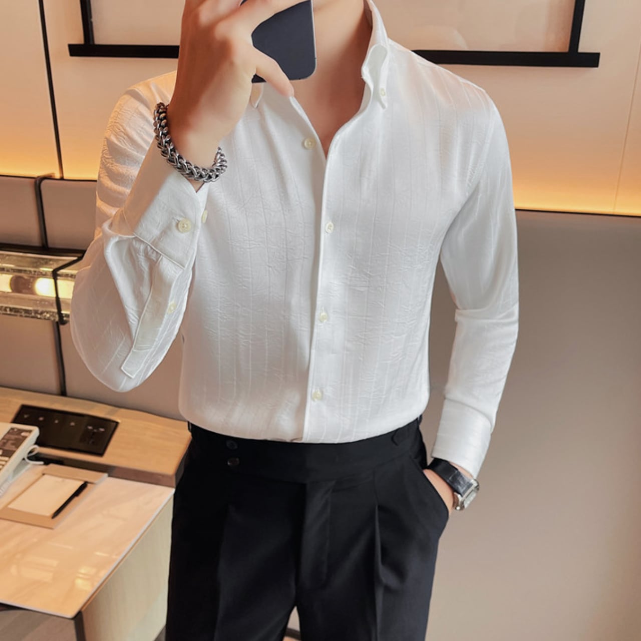 高級感漂う ストライプ シャツ 3色 11206