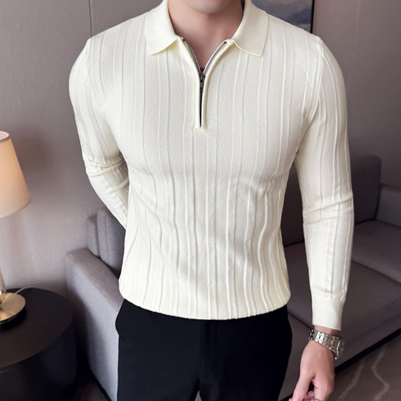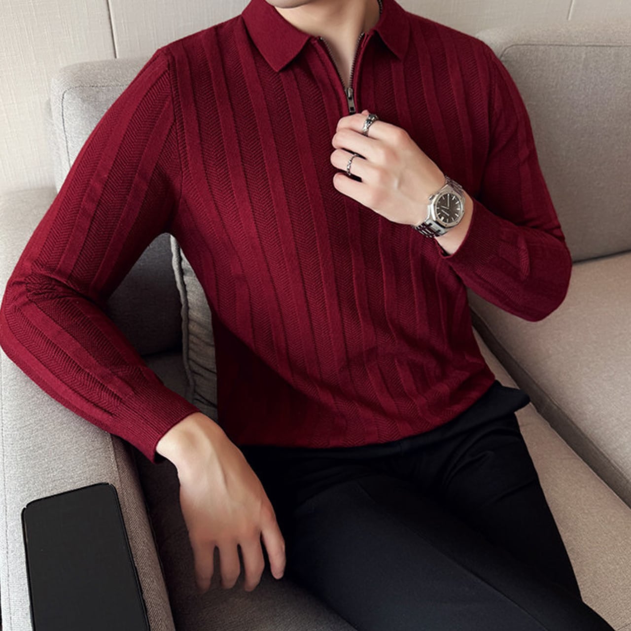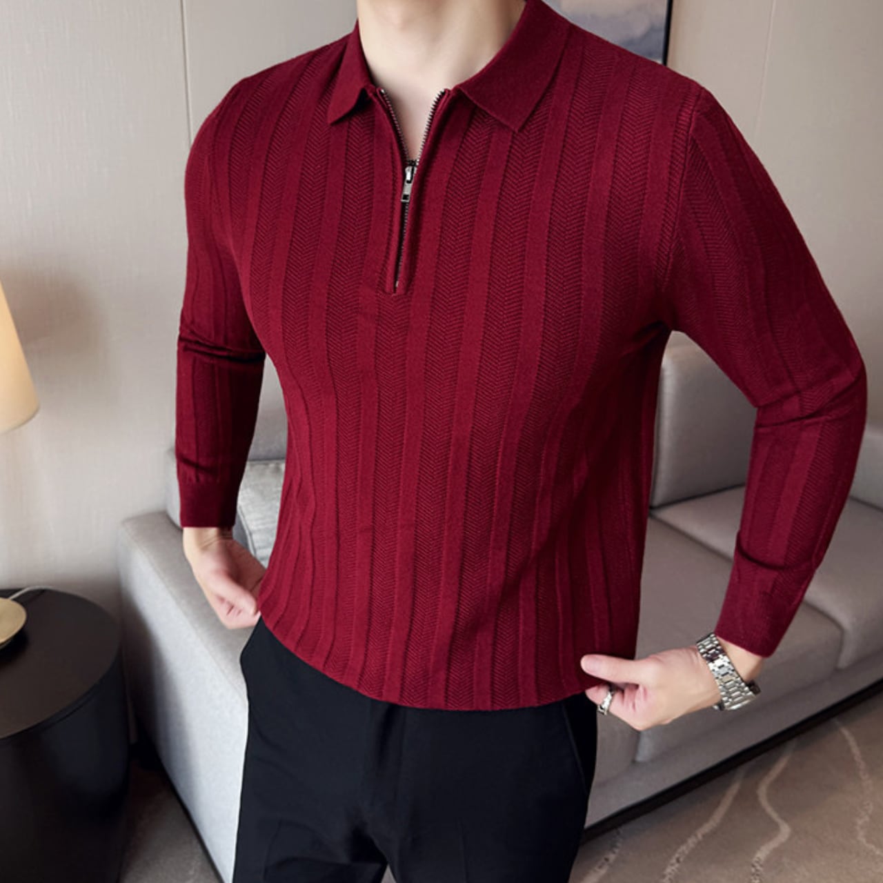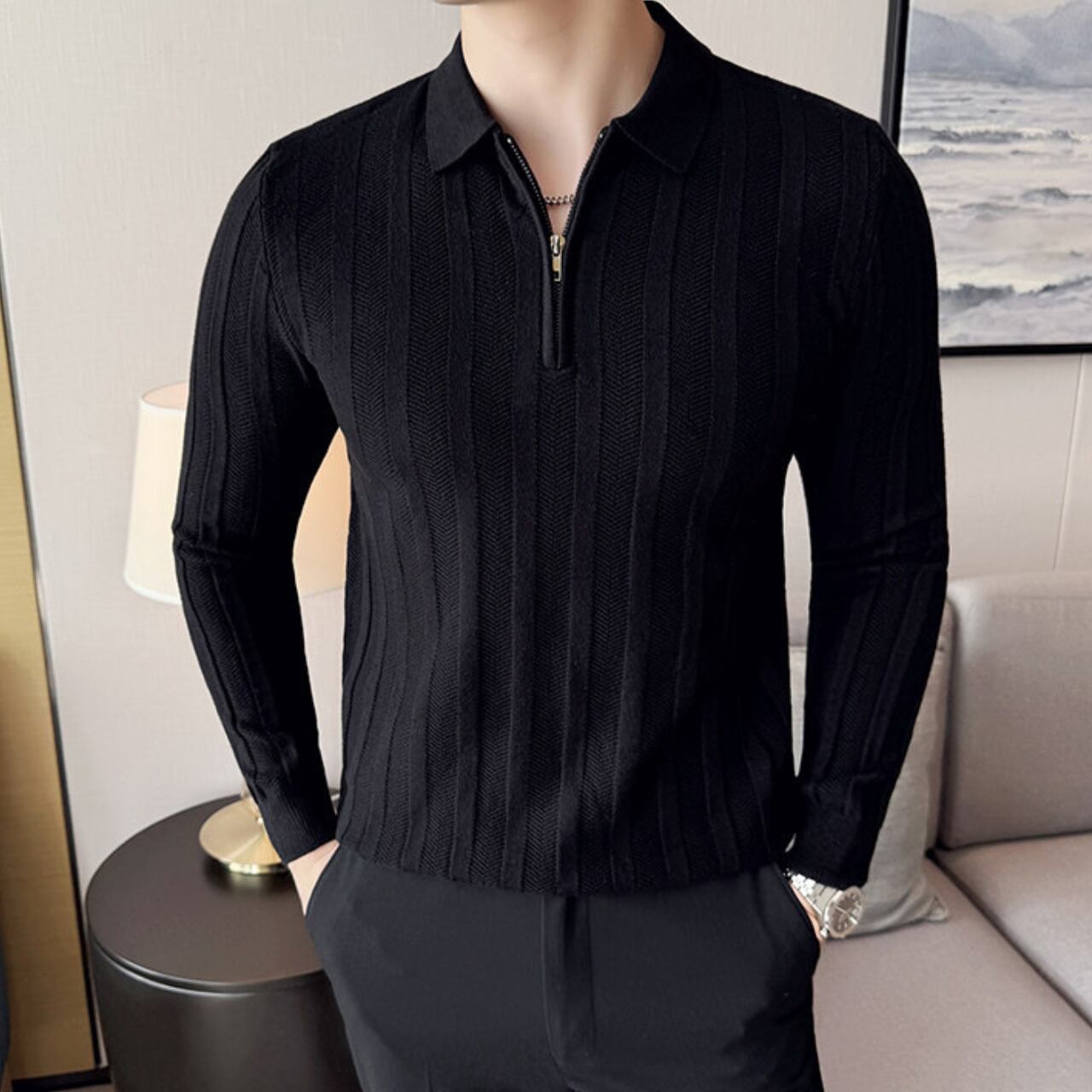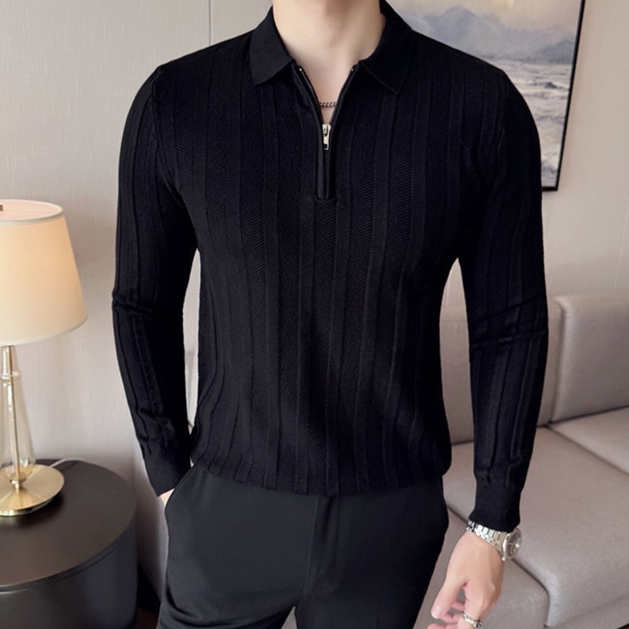 ハーフジッパー スリムフィット ポロシャツ 4色 11341