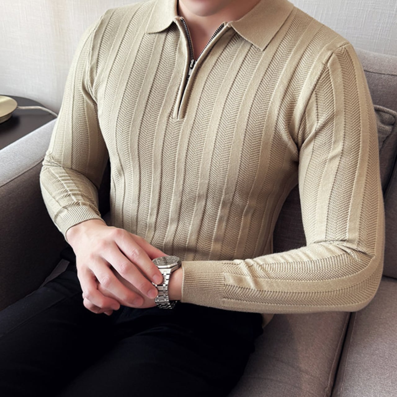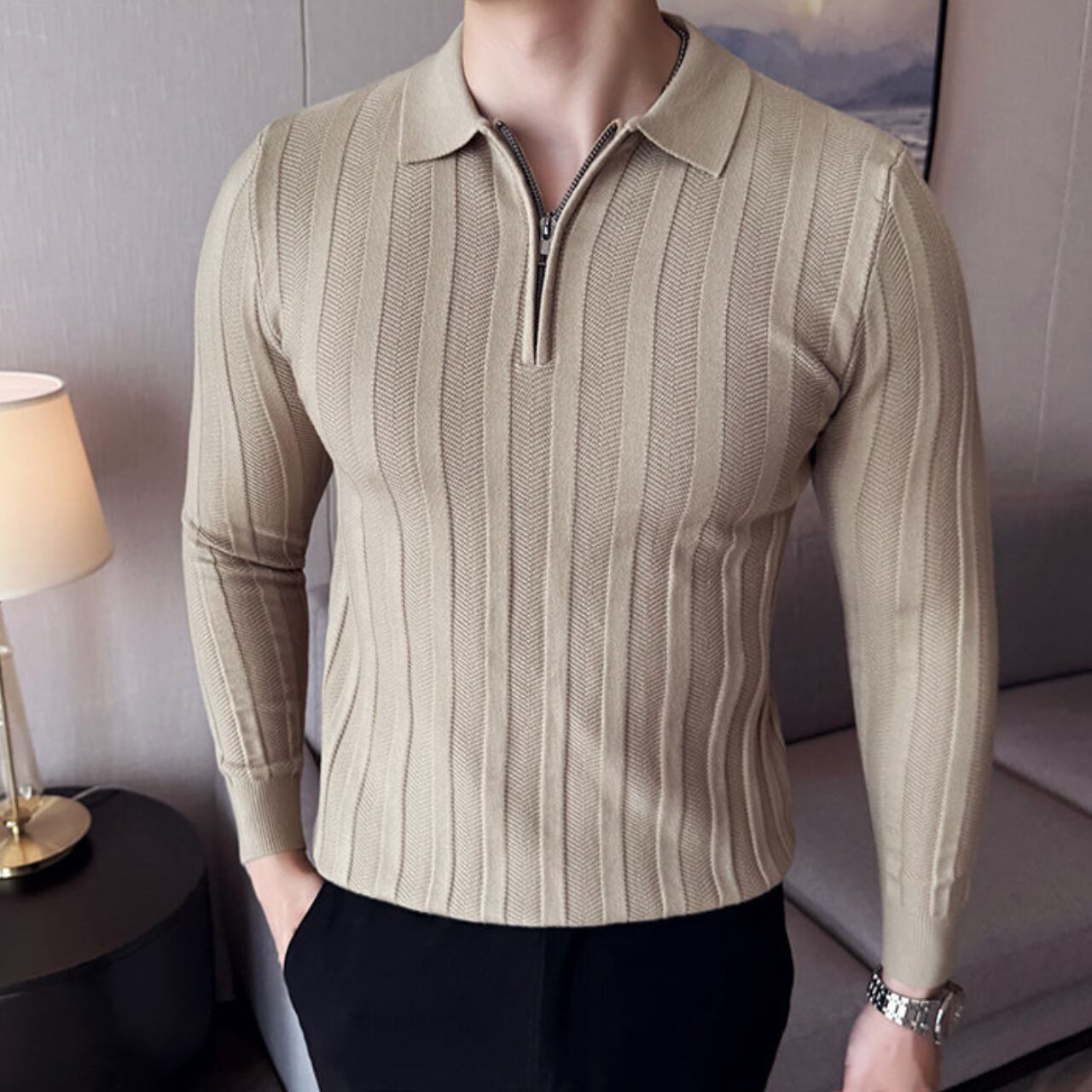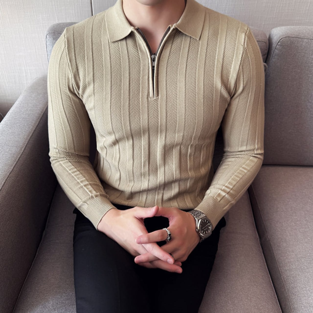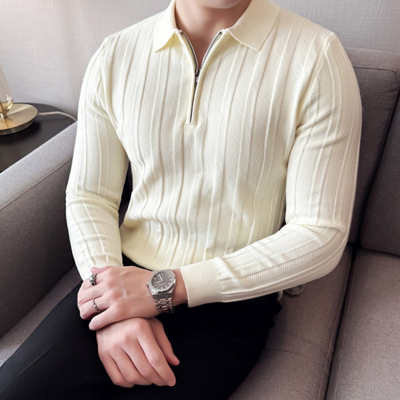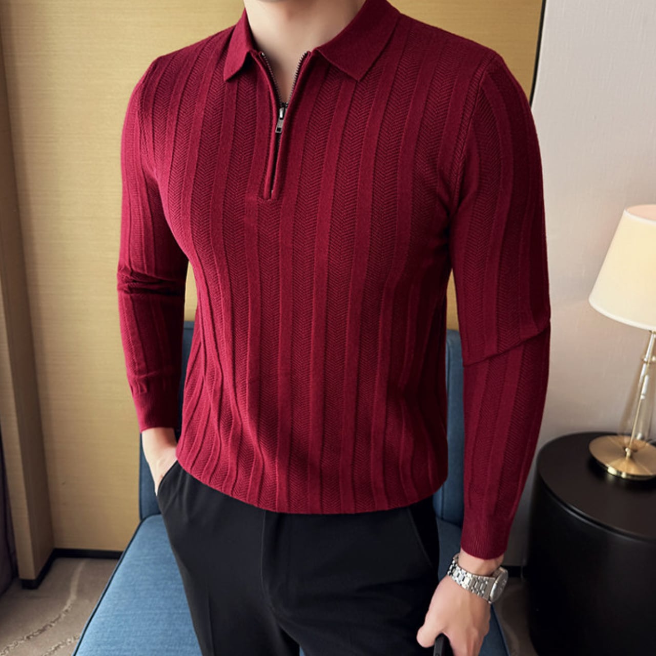 ハーフジッパー スリムフィット ポロシャツ 4色 11341
