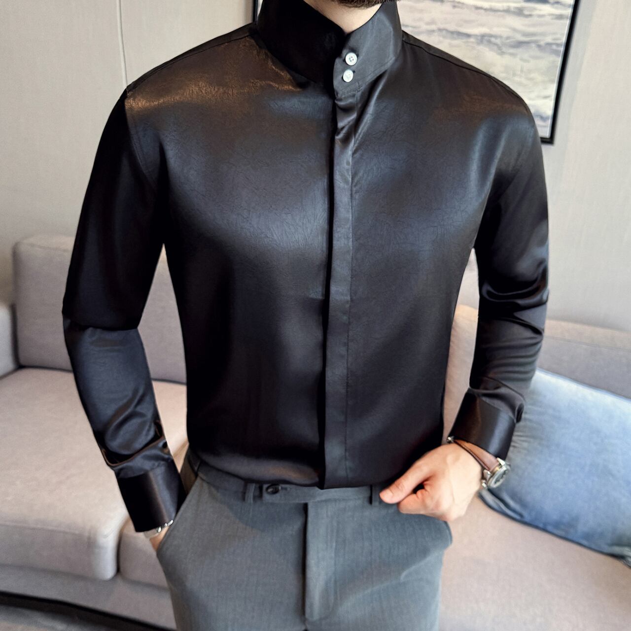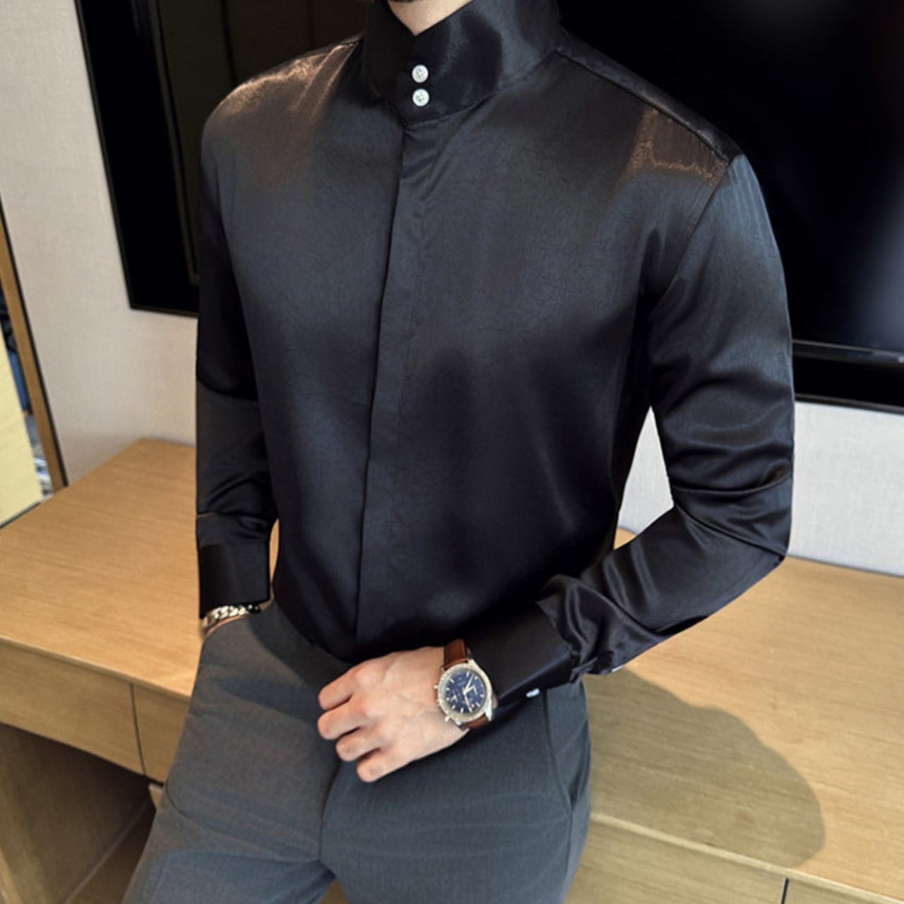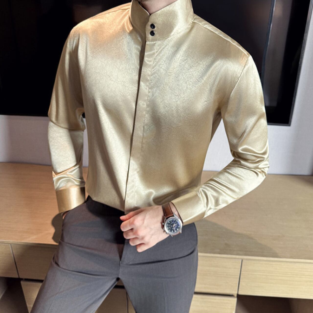 中国風 ハイネック シャツ 3色 11351