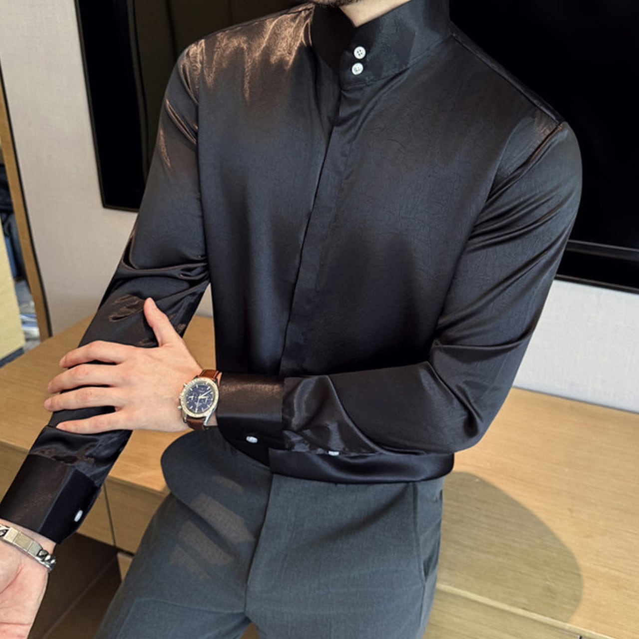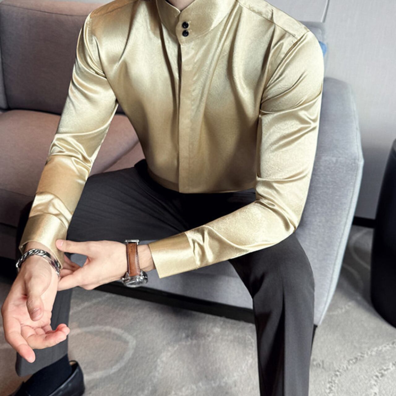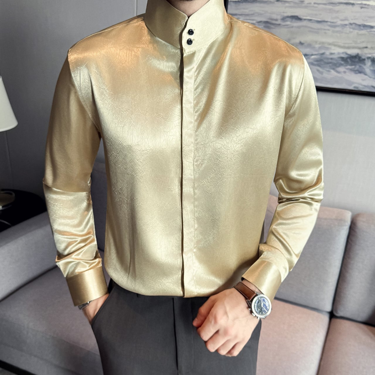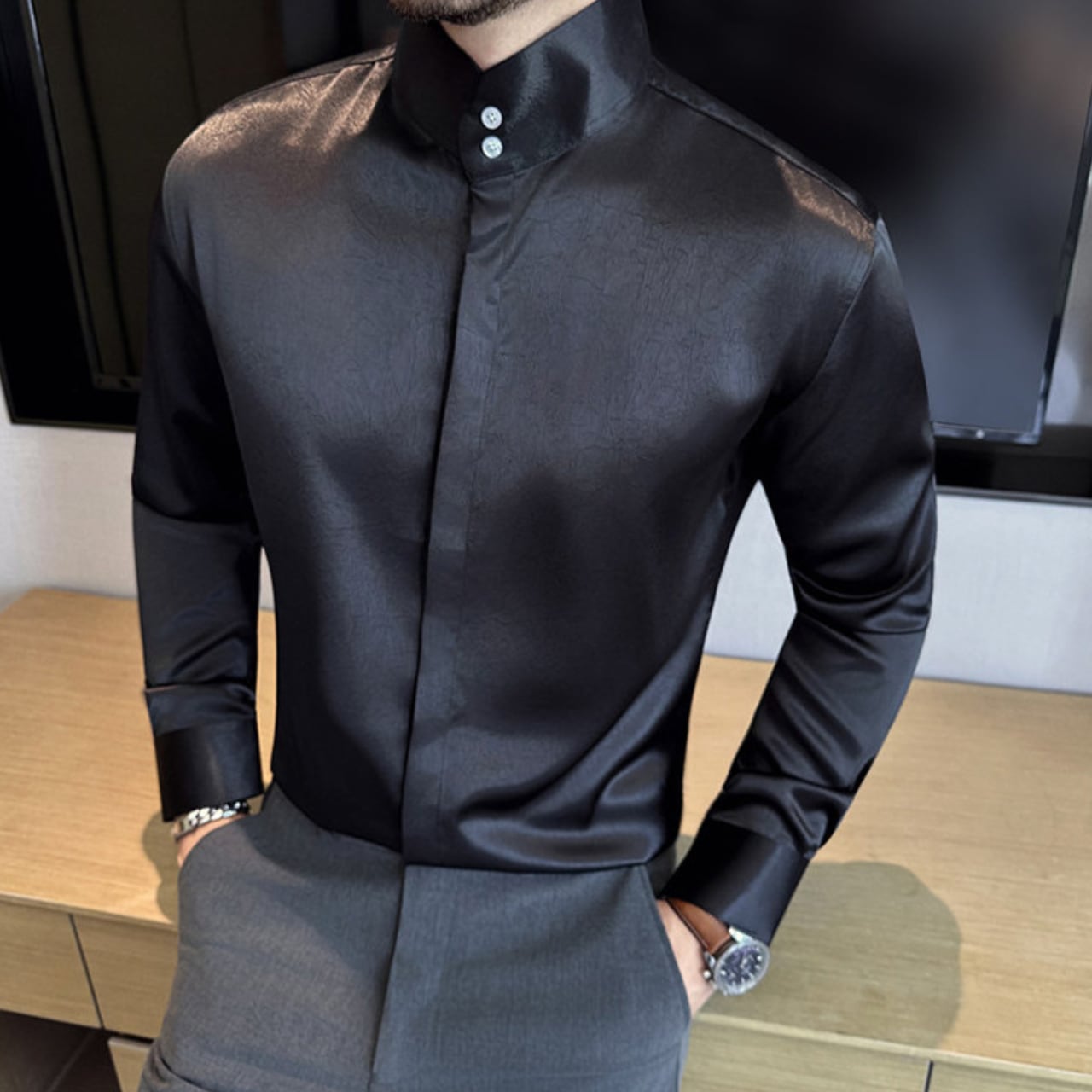 中国風 ハイネック シャツ 3色 11351