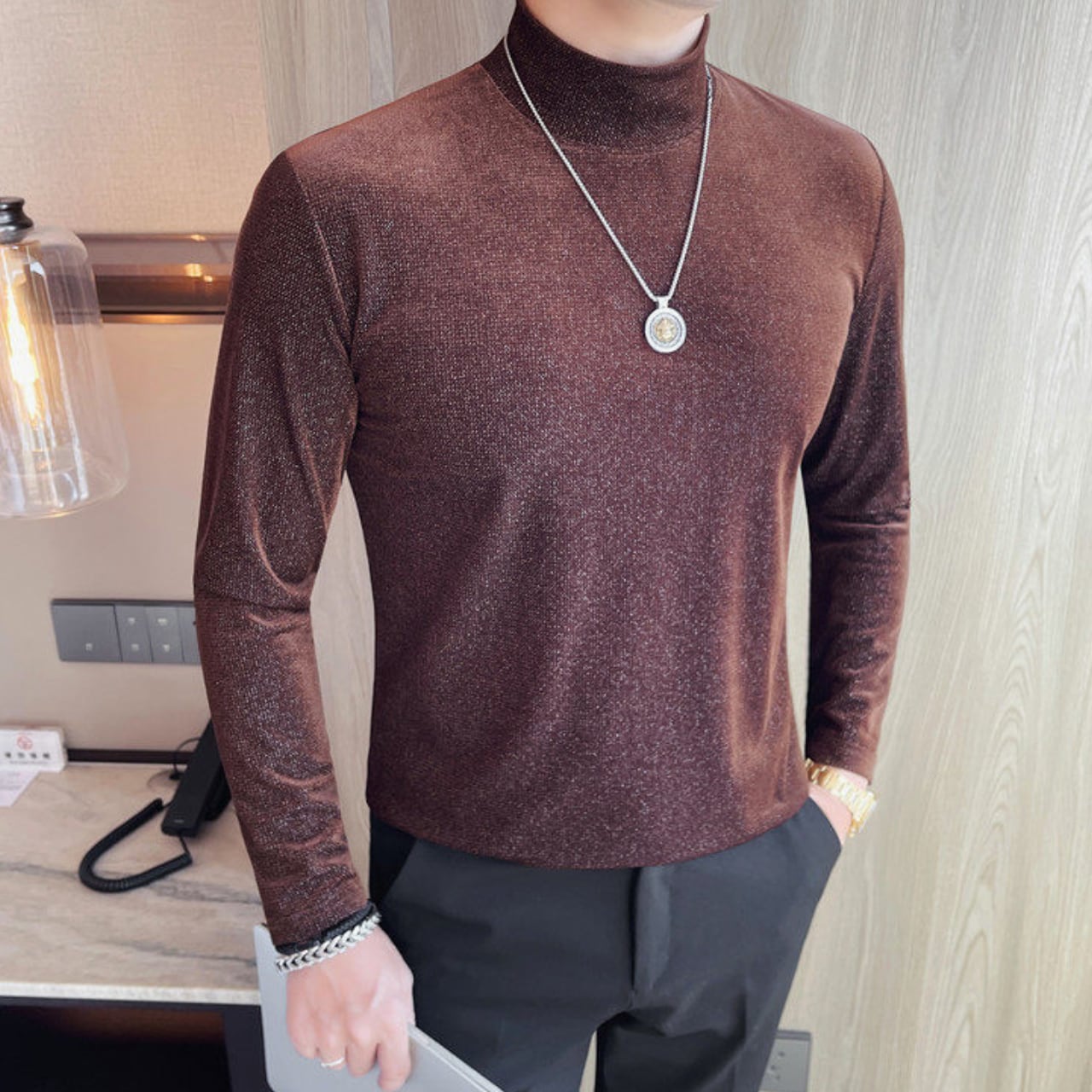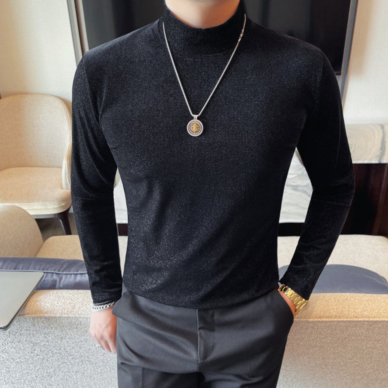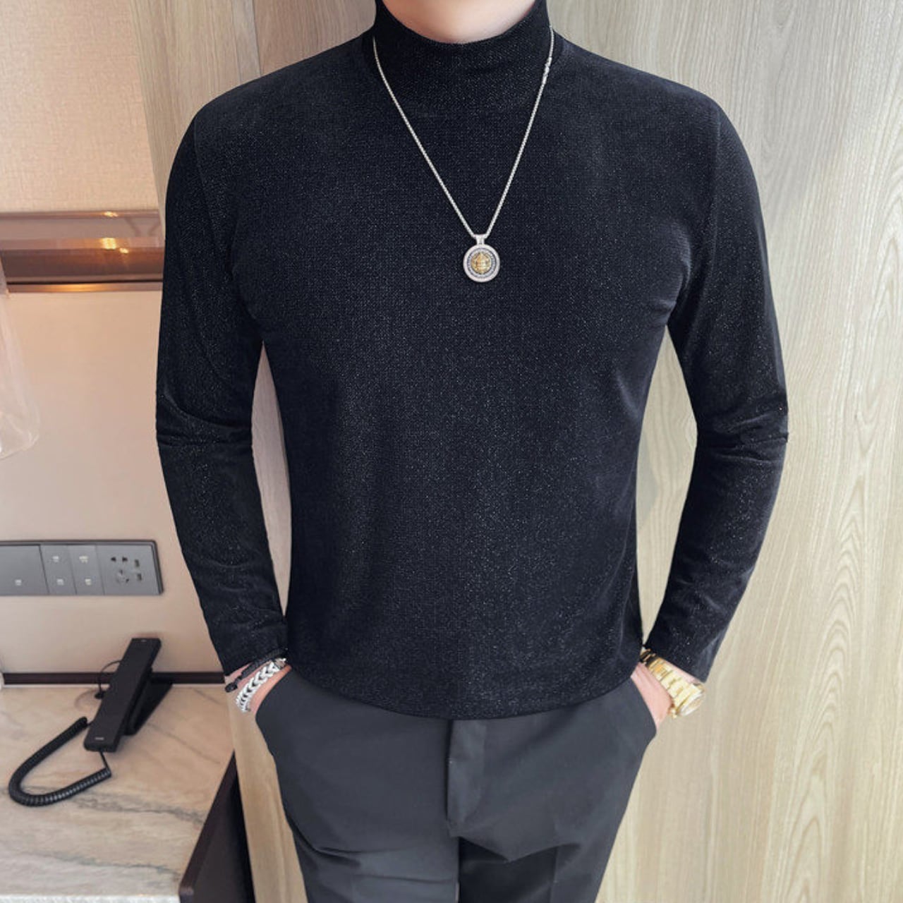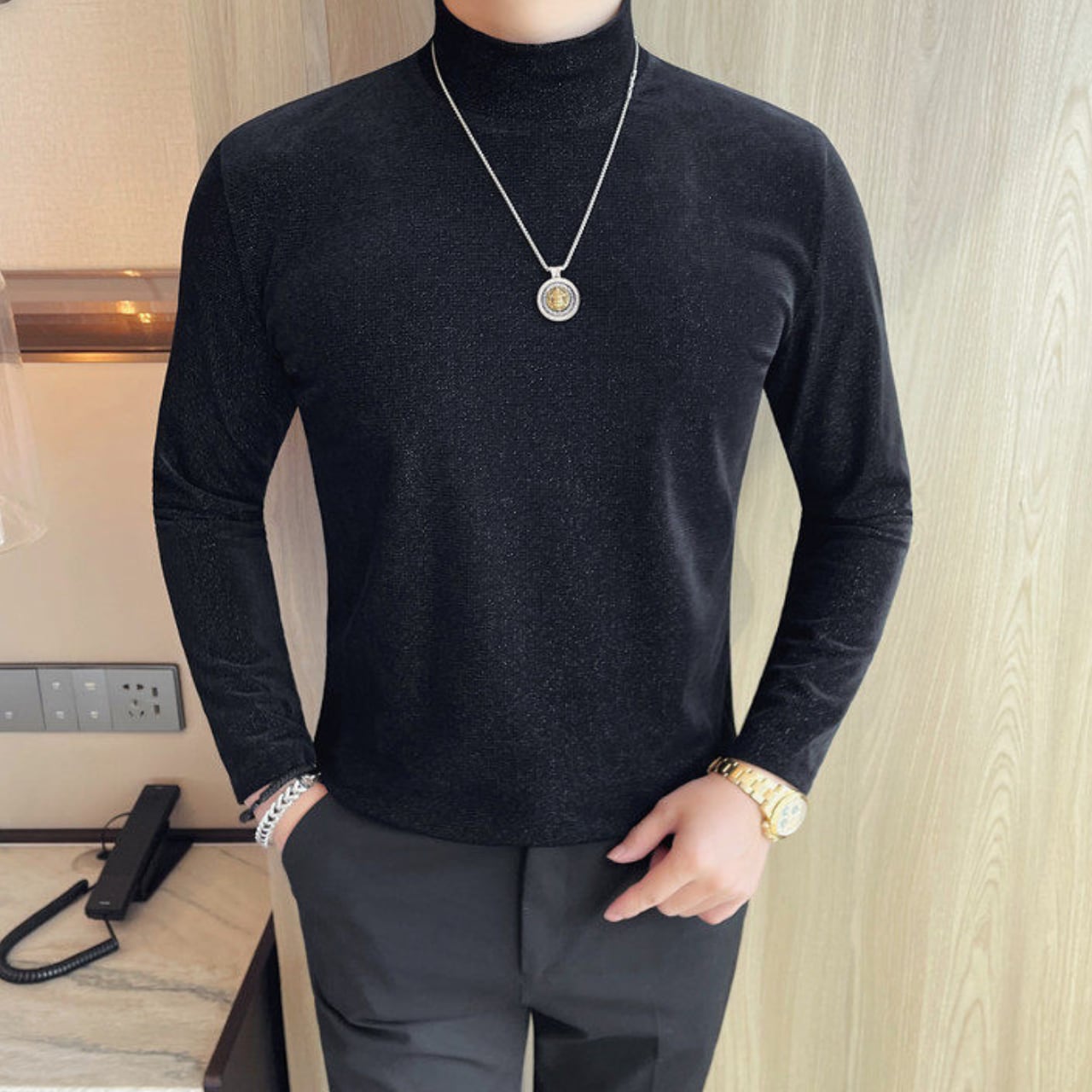 スリムフィット ハイネック シャツ 2色 11365