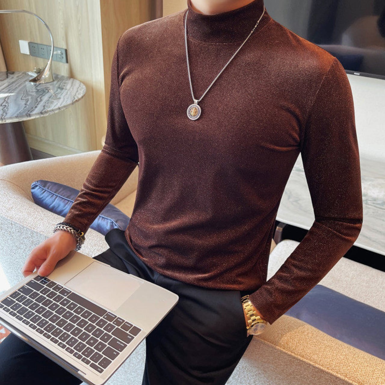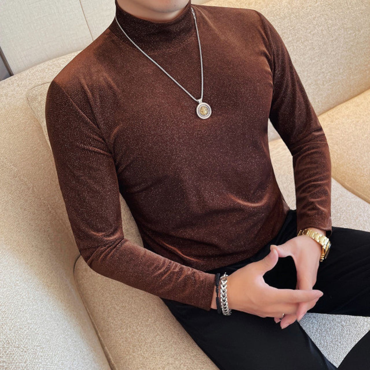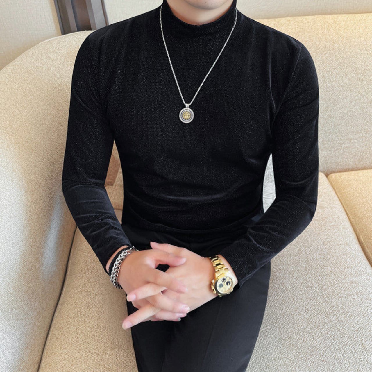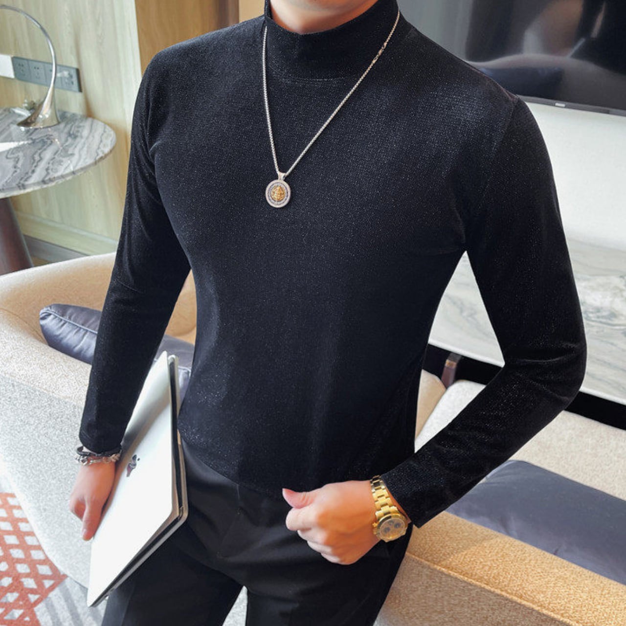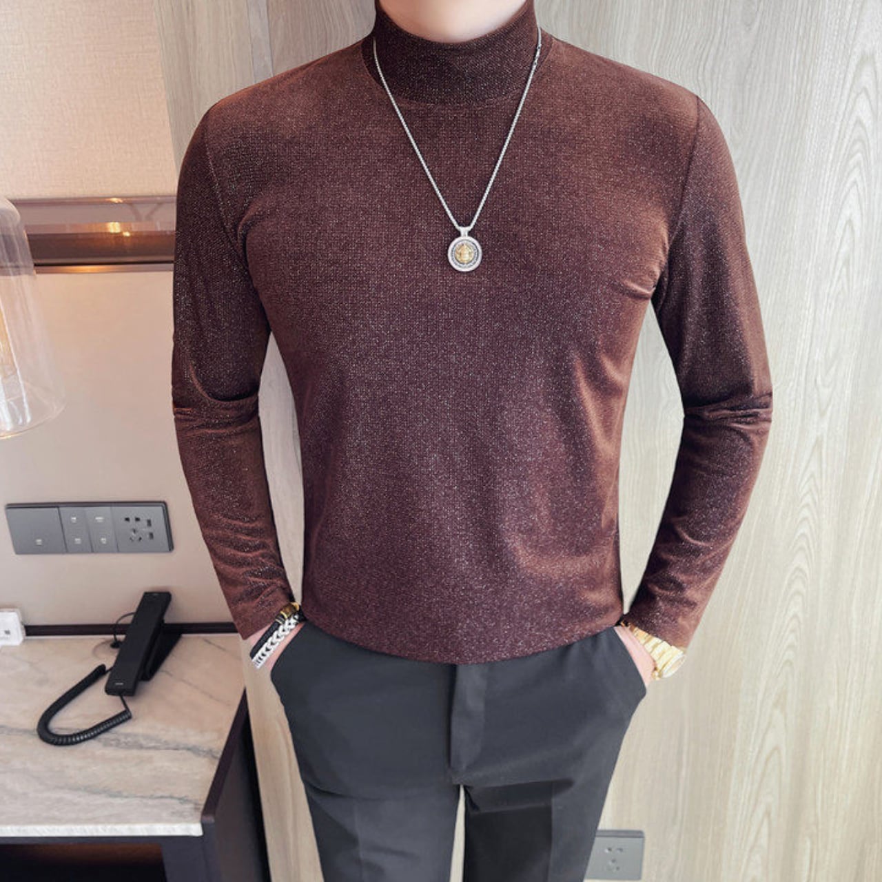 スリムフィット ハイネック シャツ 2色 11365