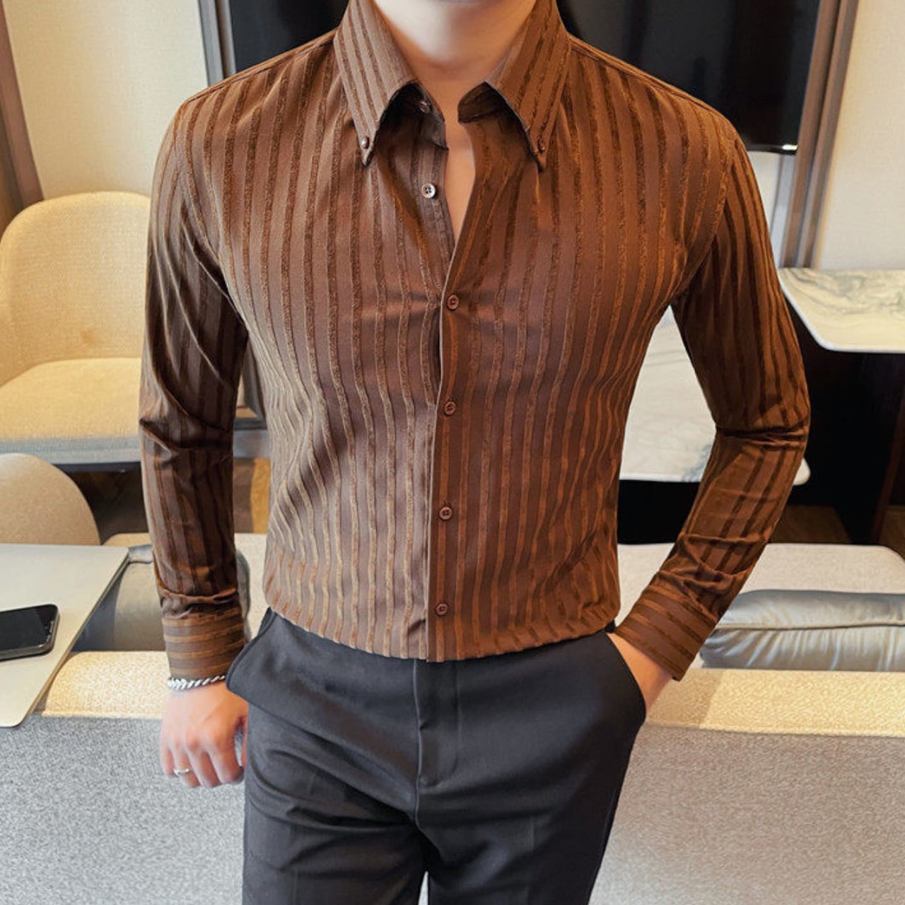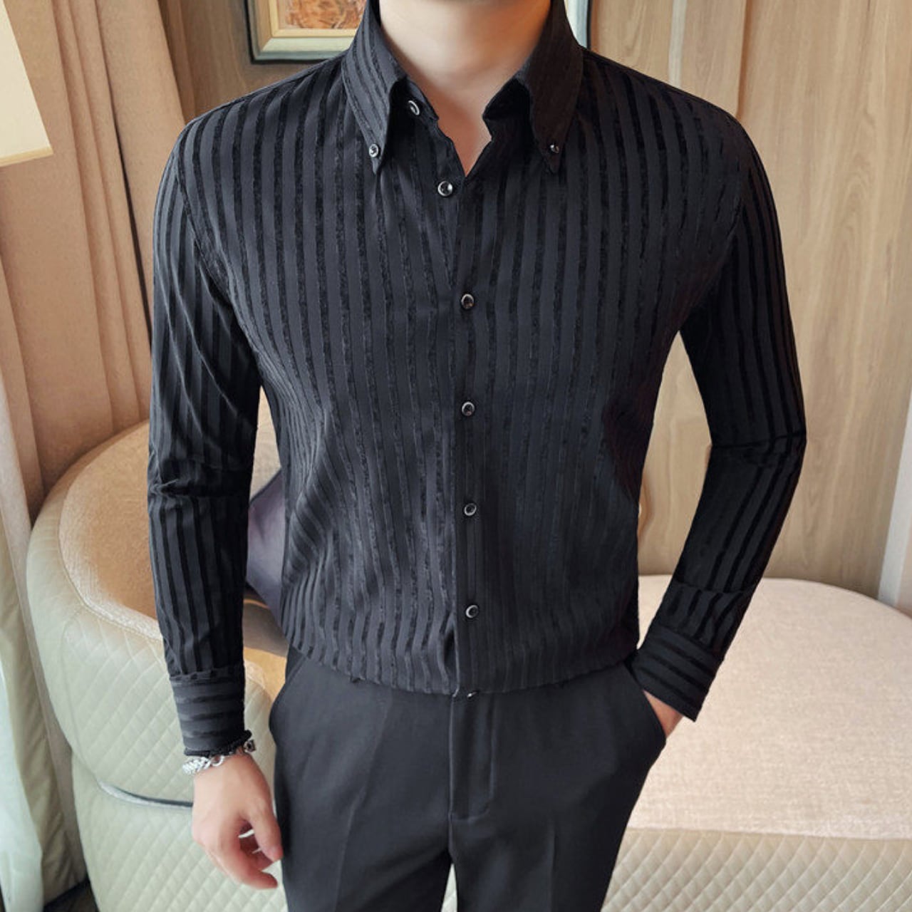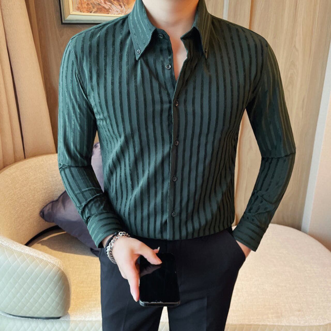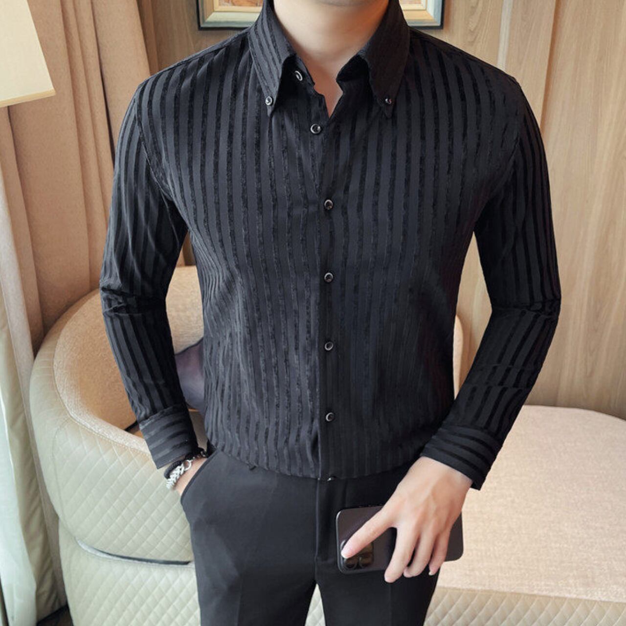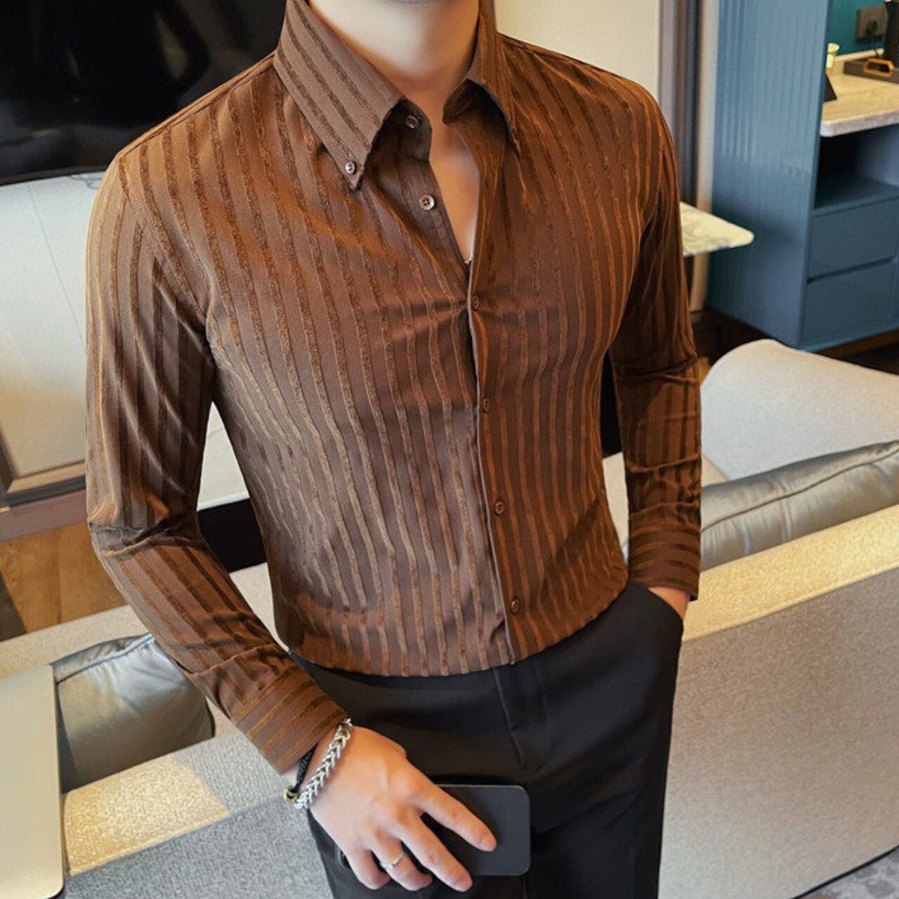 ラペルボタン ストライプ シャツ 3色 11389