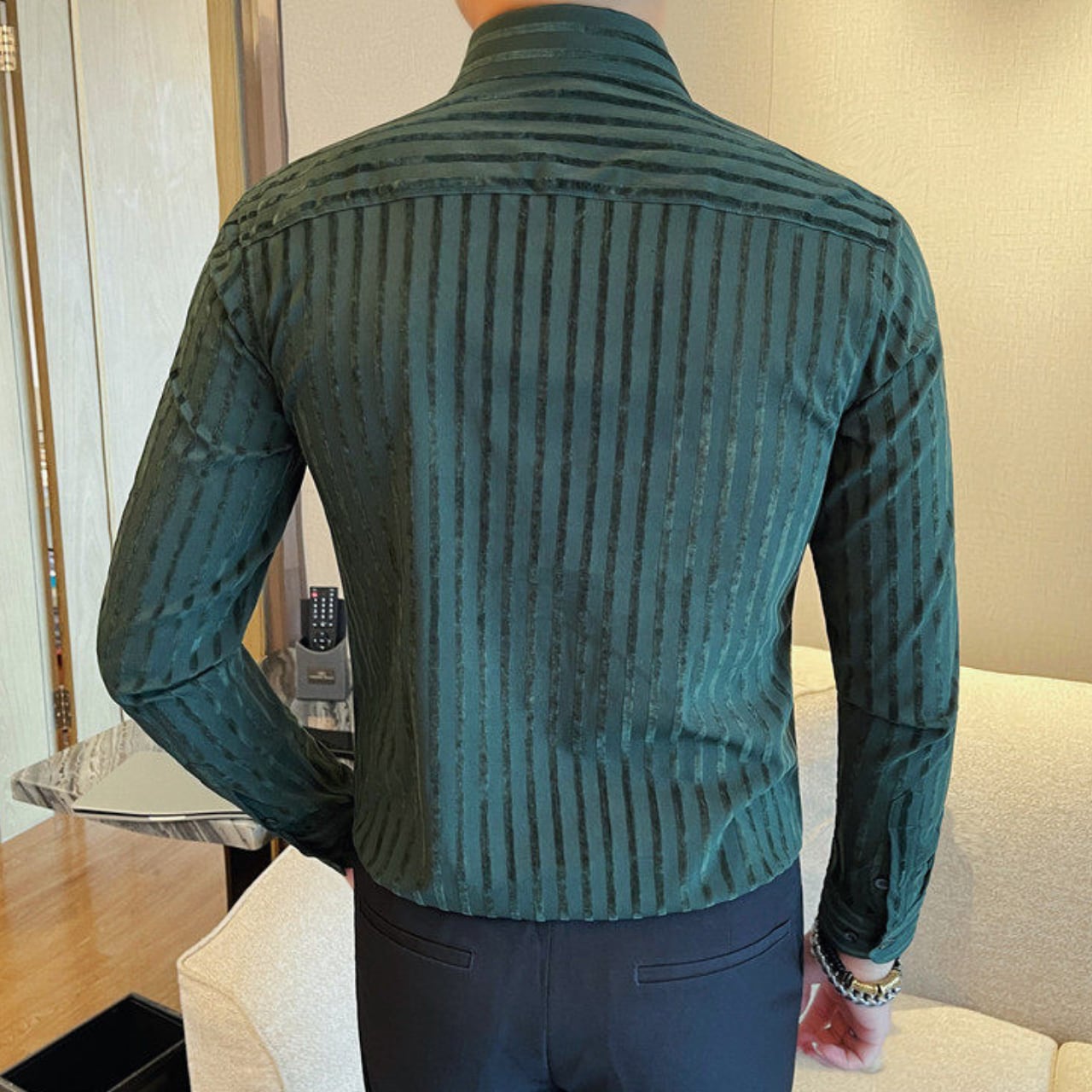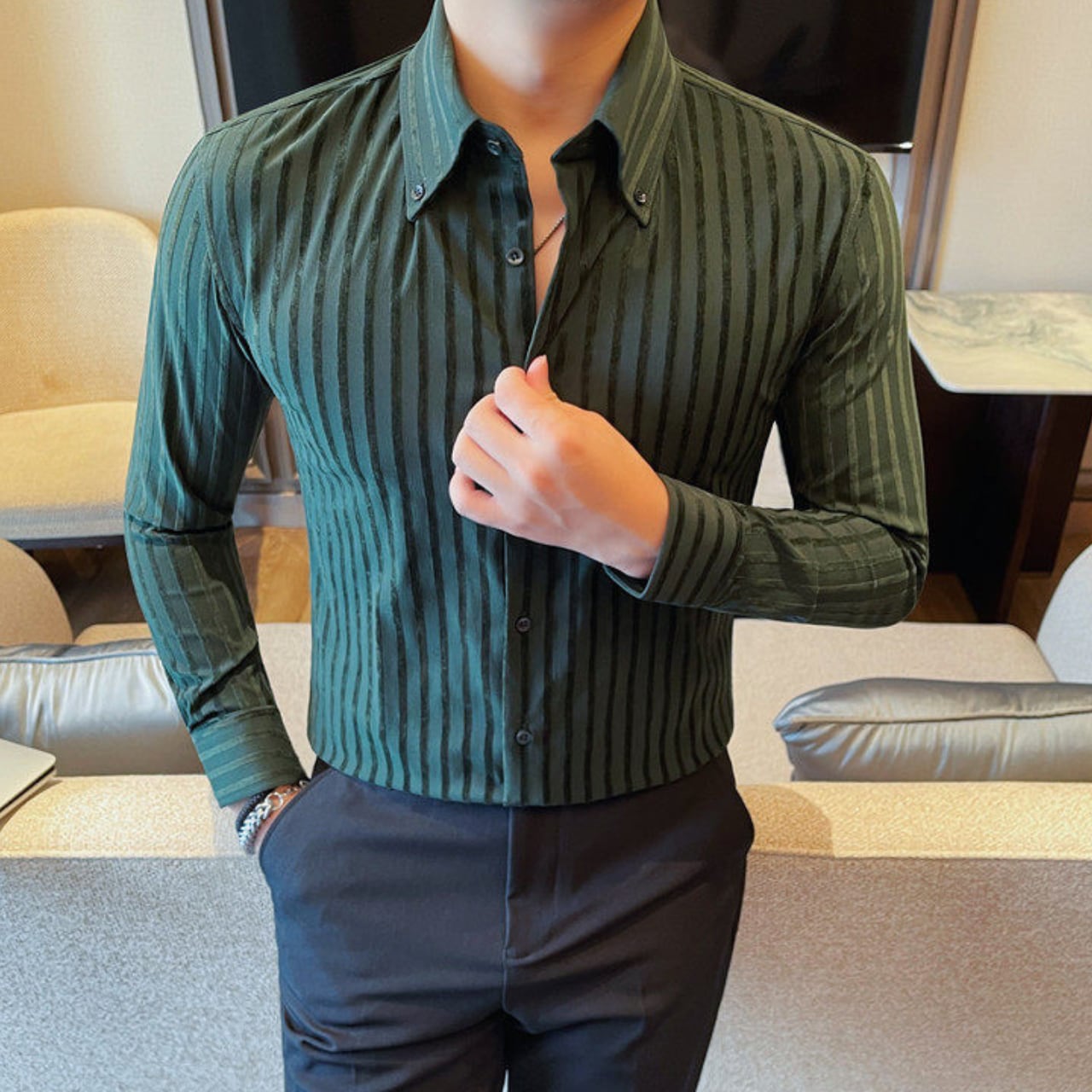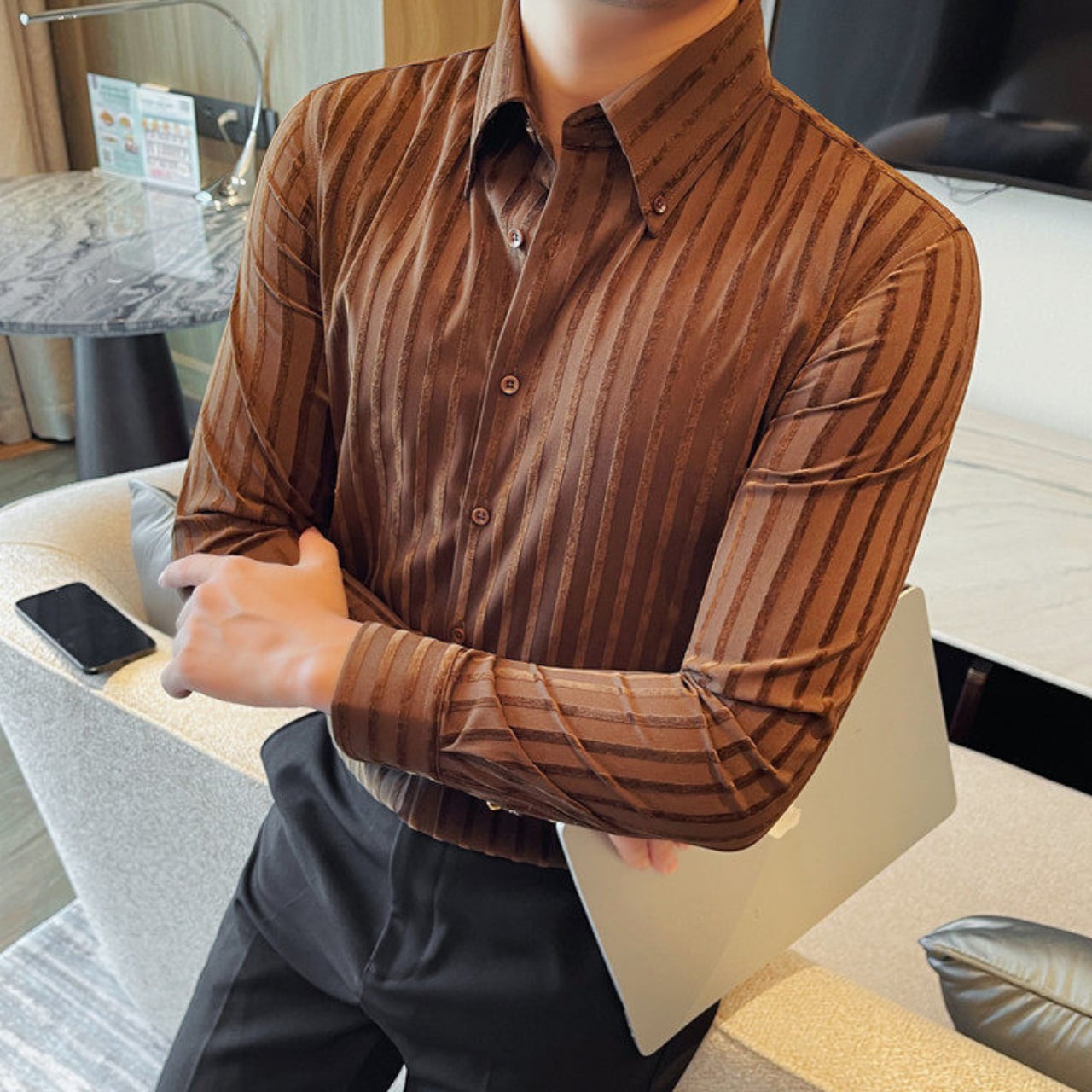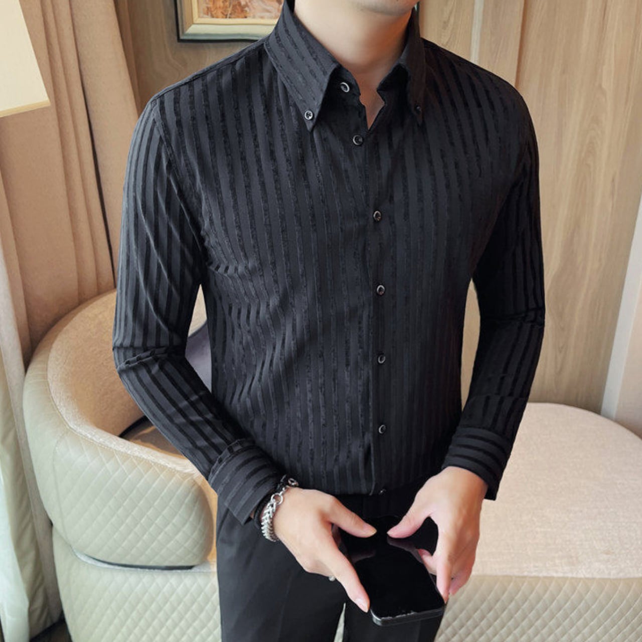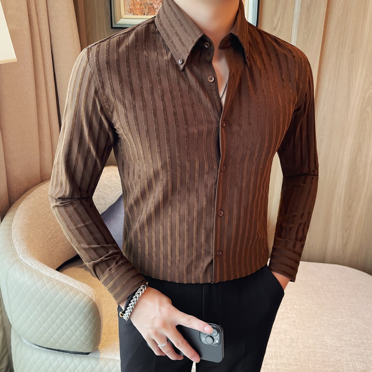 ラペルボタン ストライプ シャツ 3色 11389