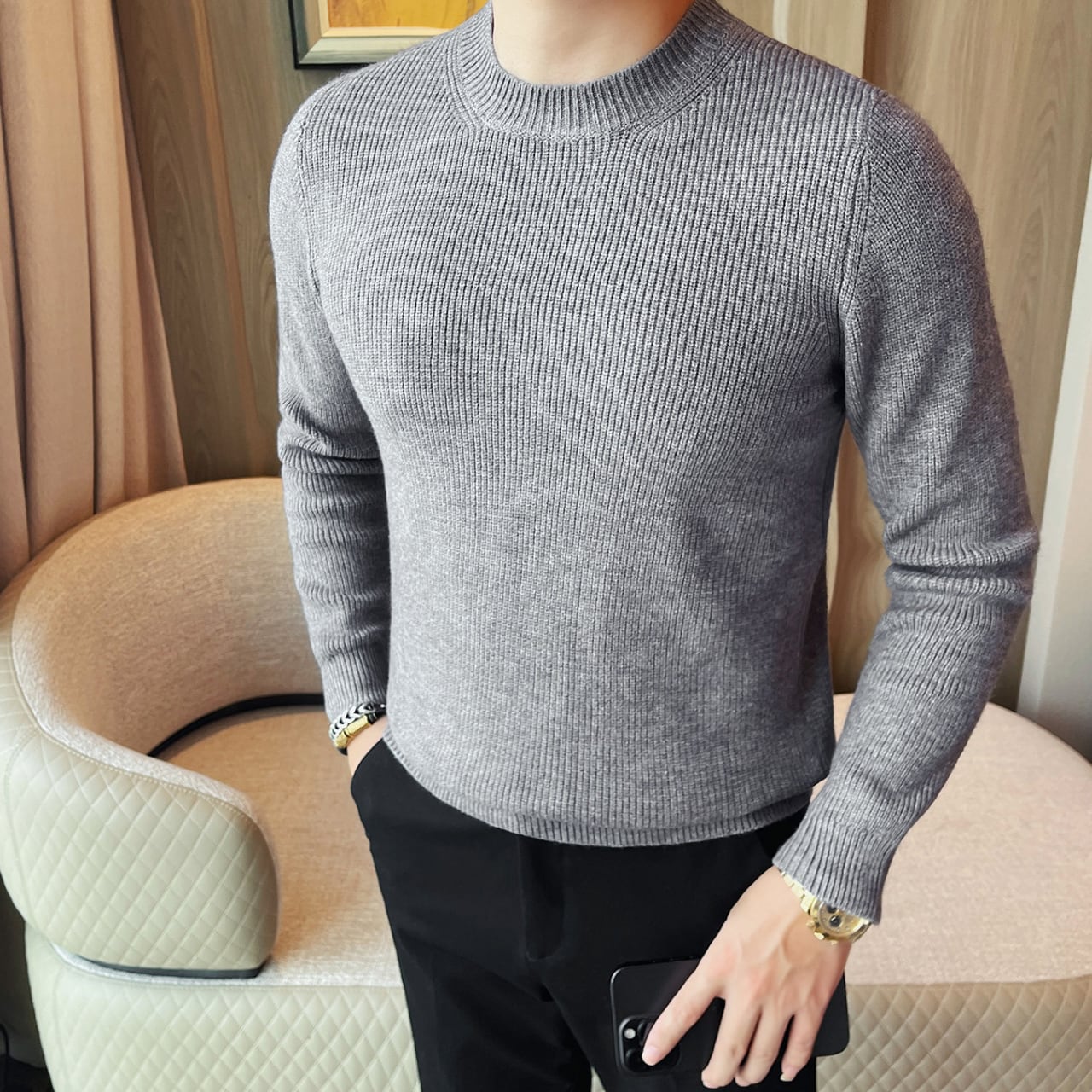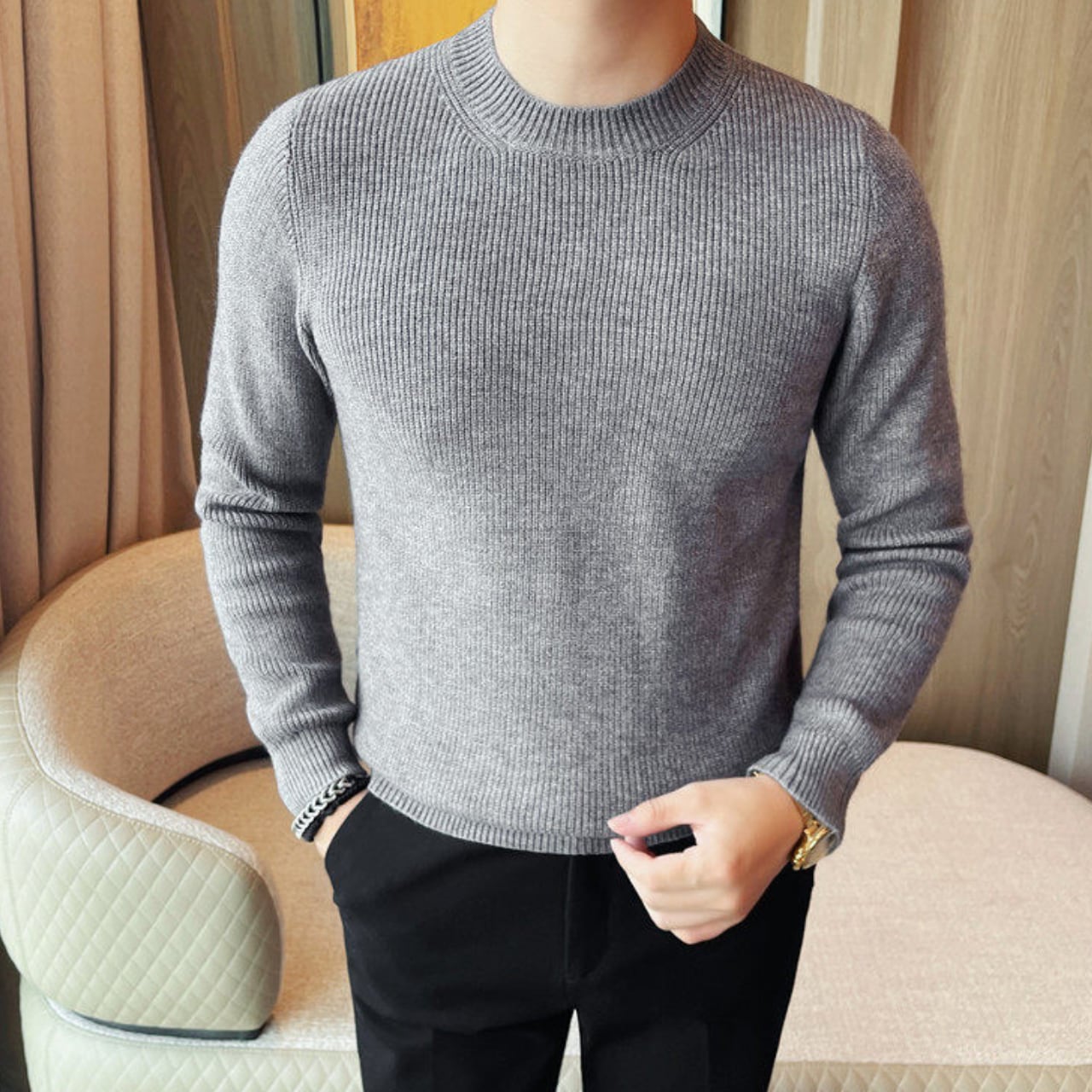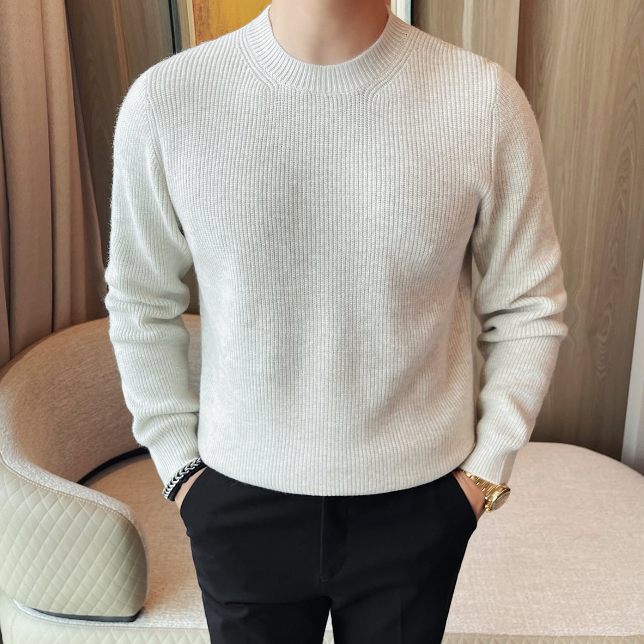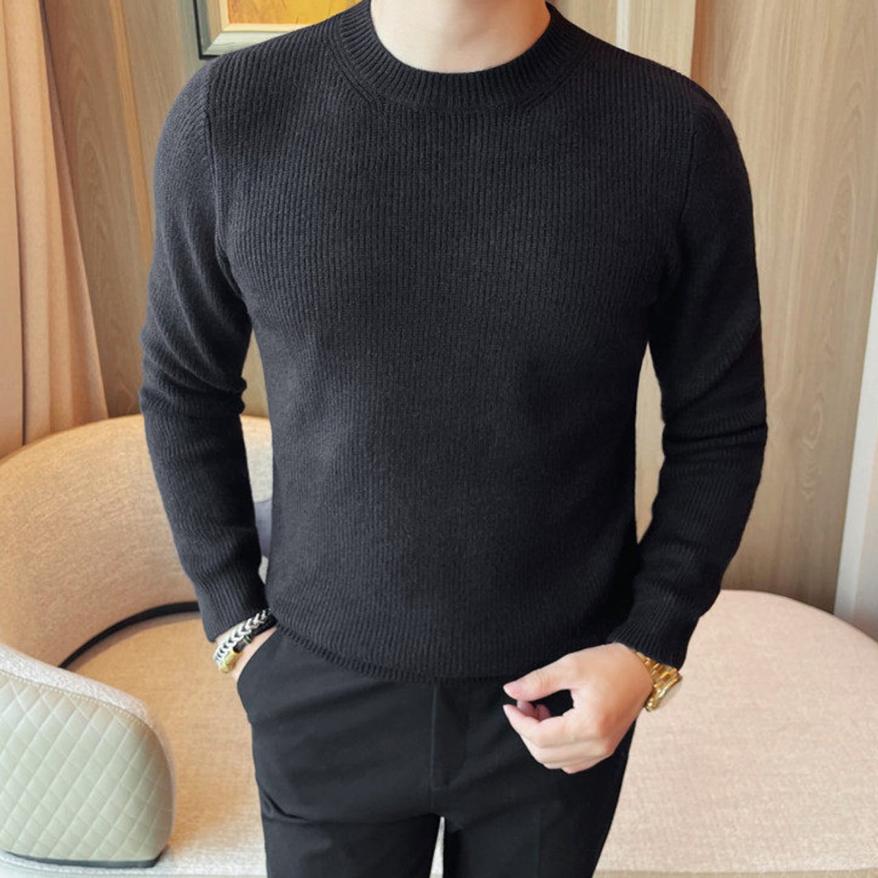 ファッショナブル クルーネック セーター 3色 11401