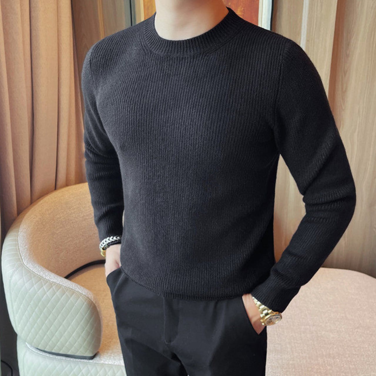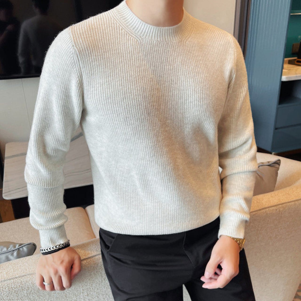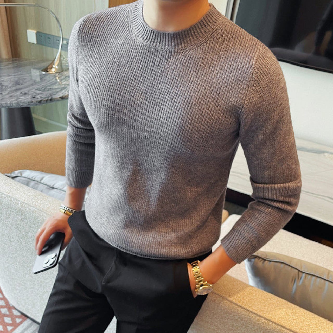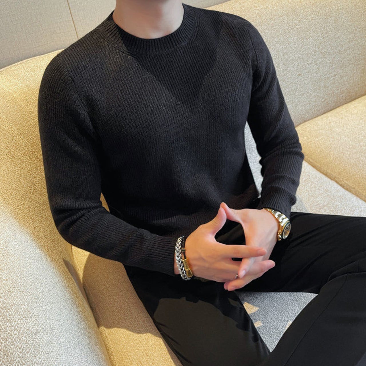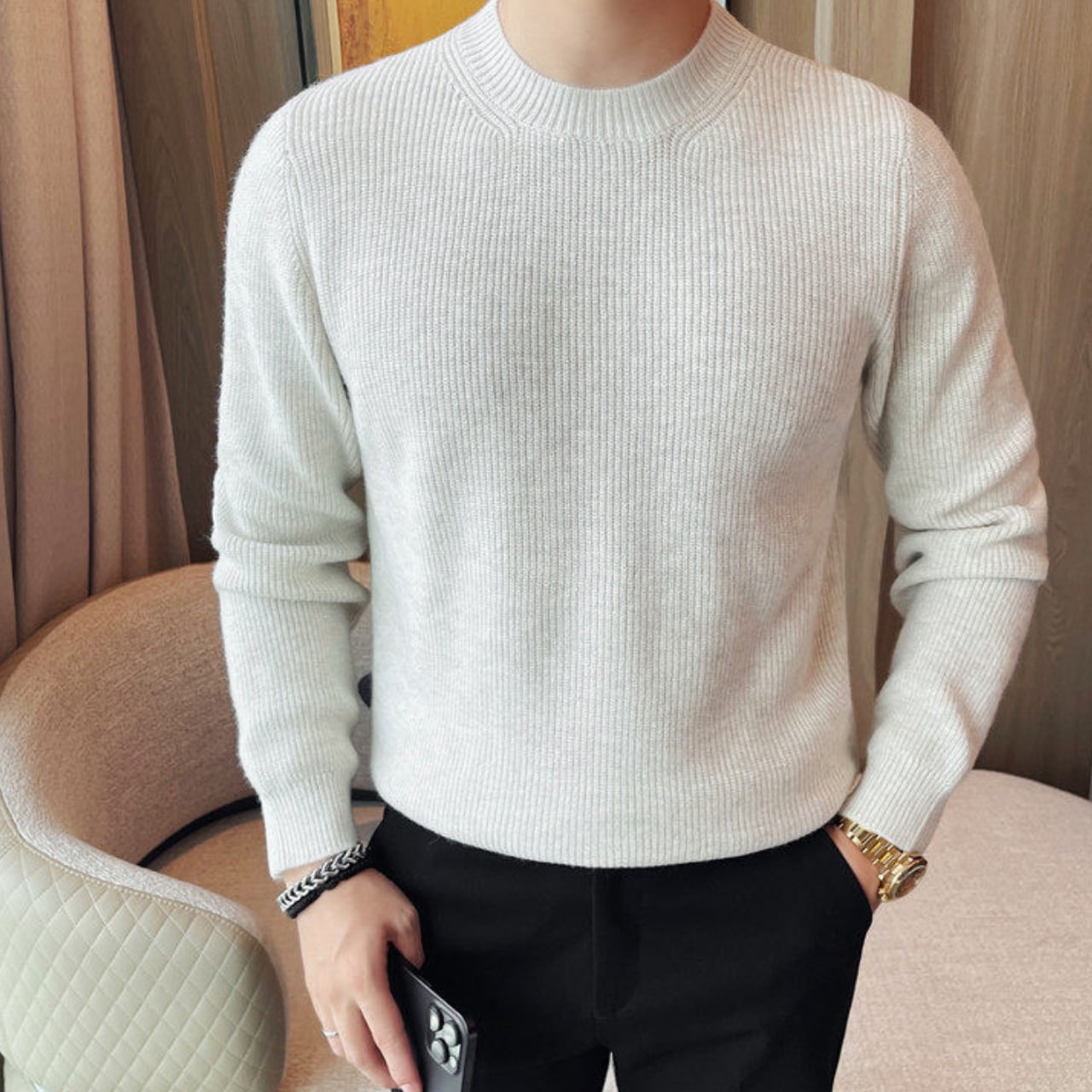 ファッショナブル クルーネック セーター 3色 11401