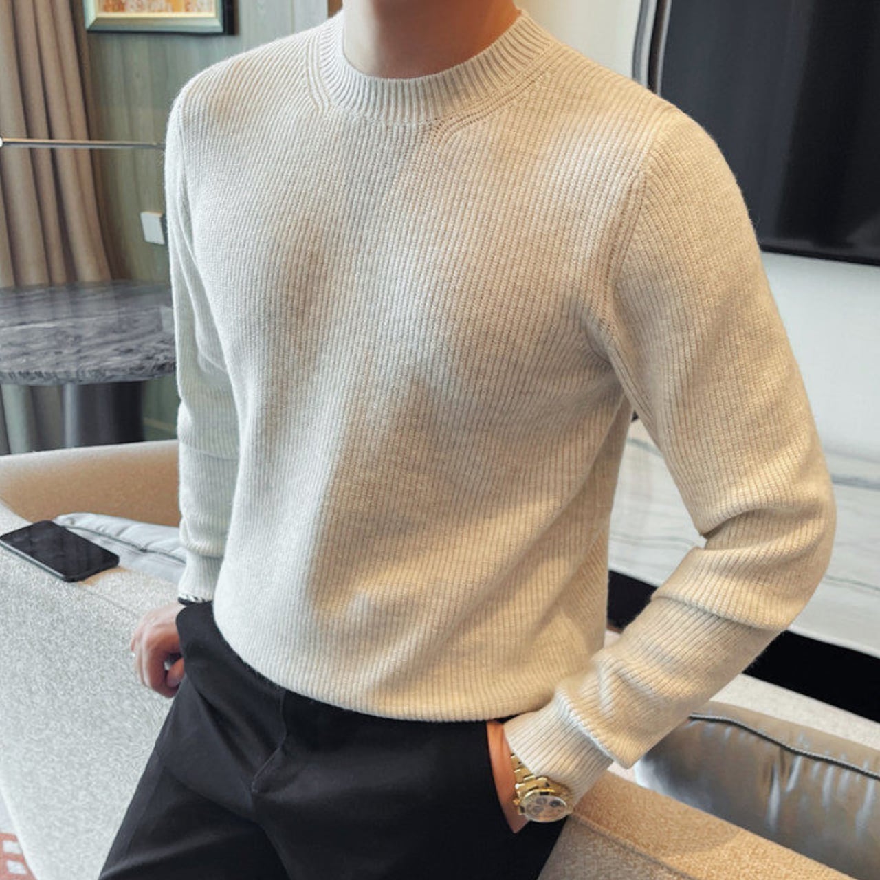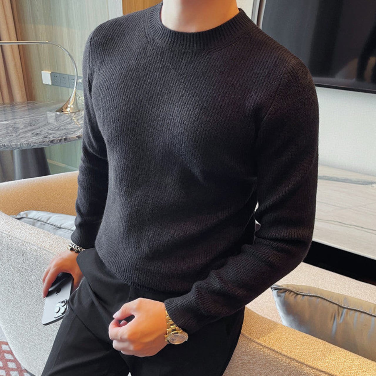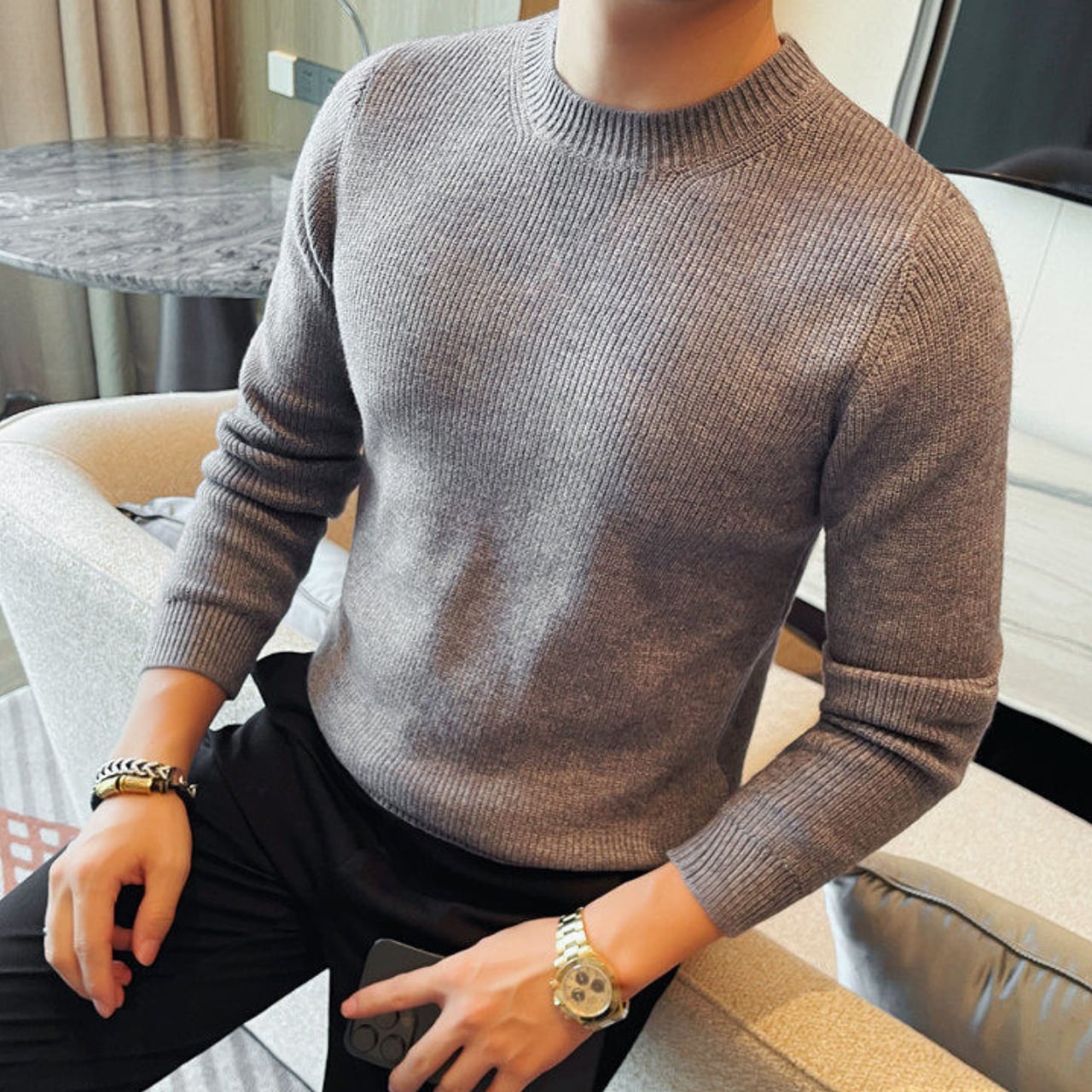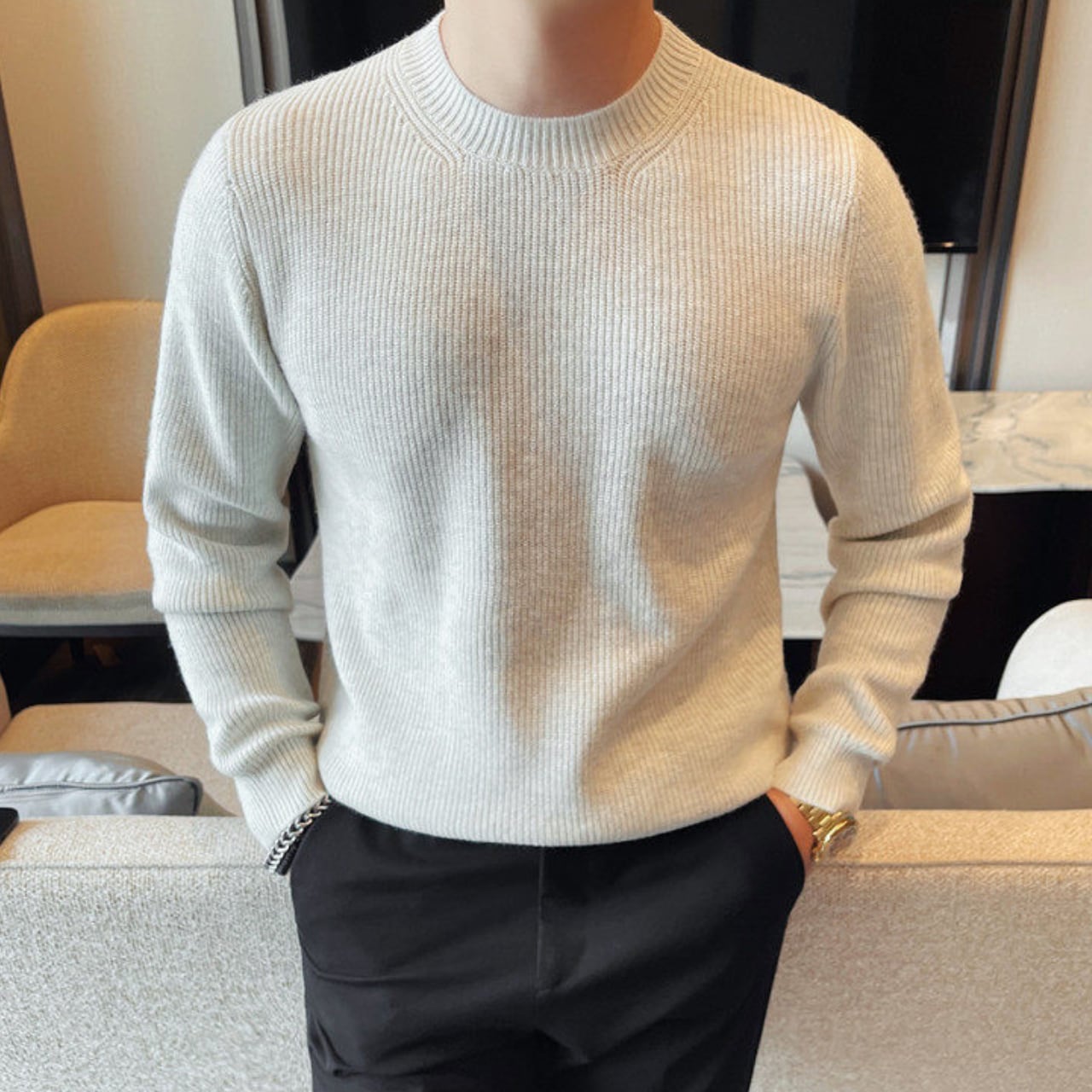 ファッショナブル クルーネック セーター 3色 11401