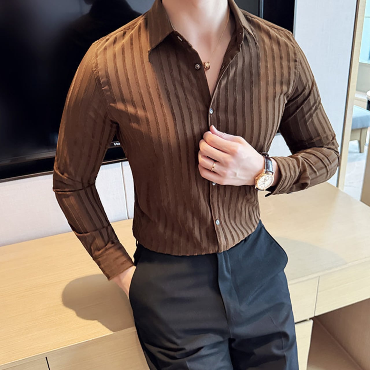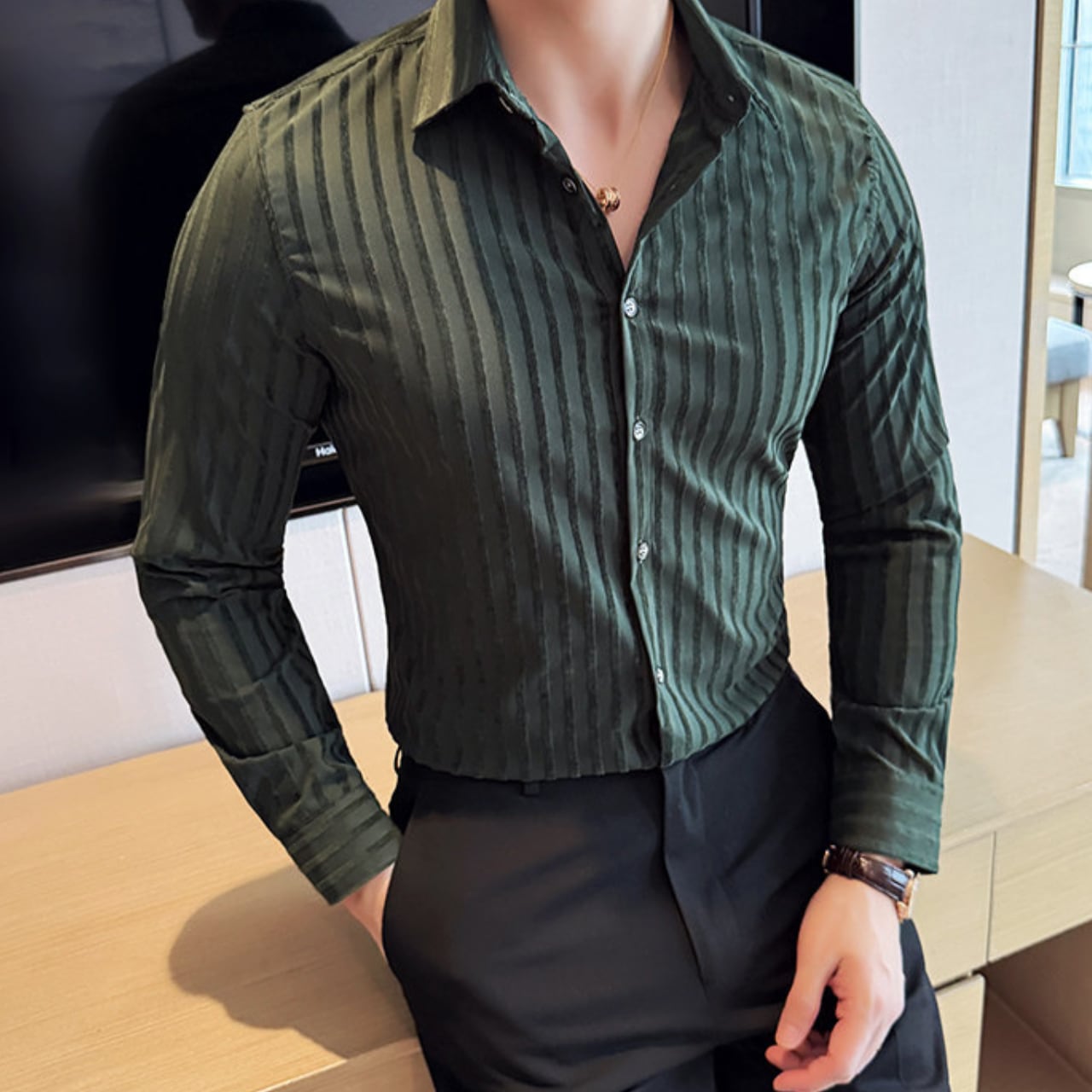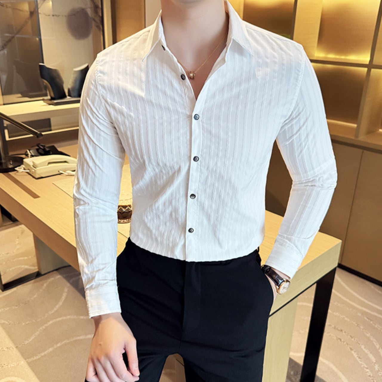 ストライプ スタイリッシュ シャツ 4色 11409
