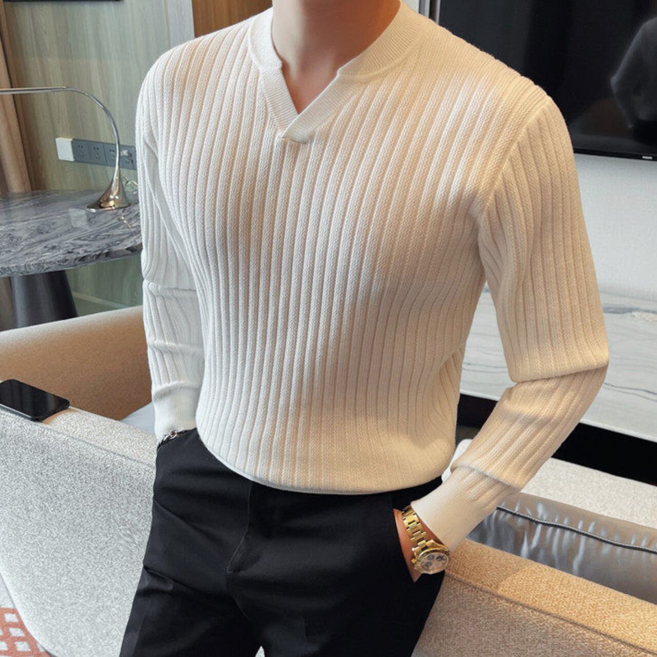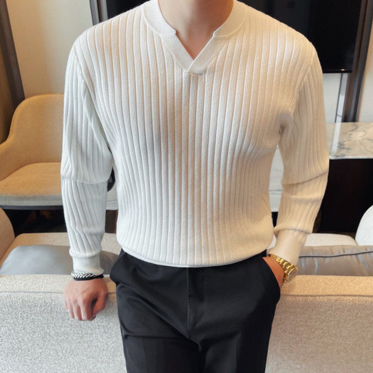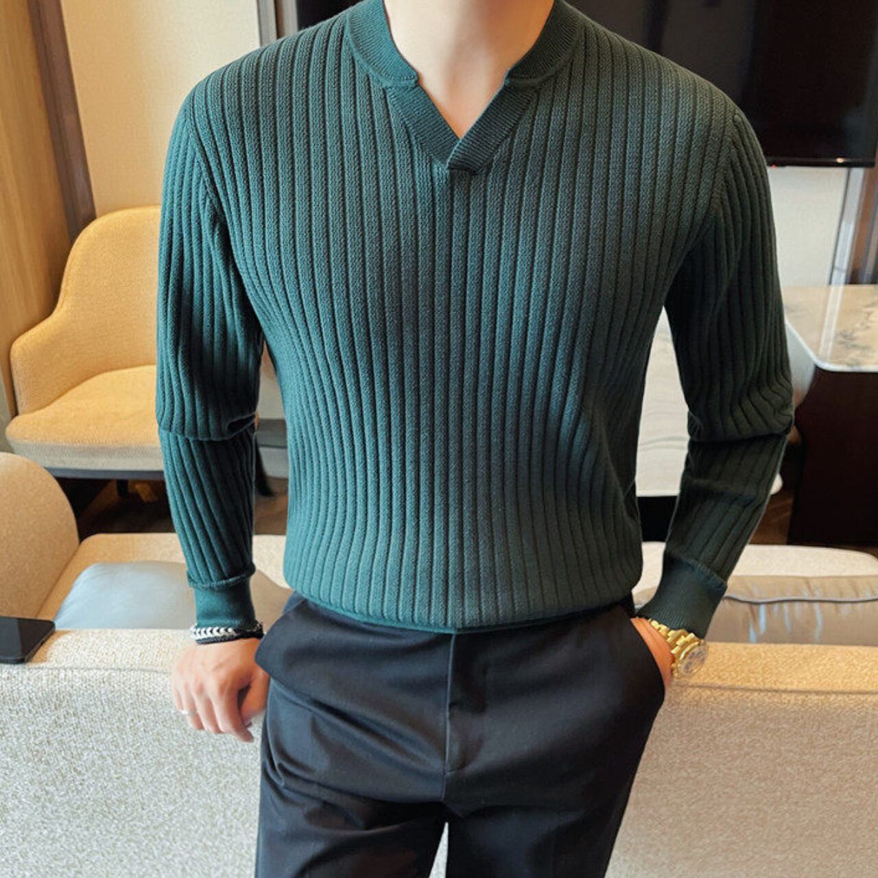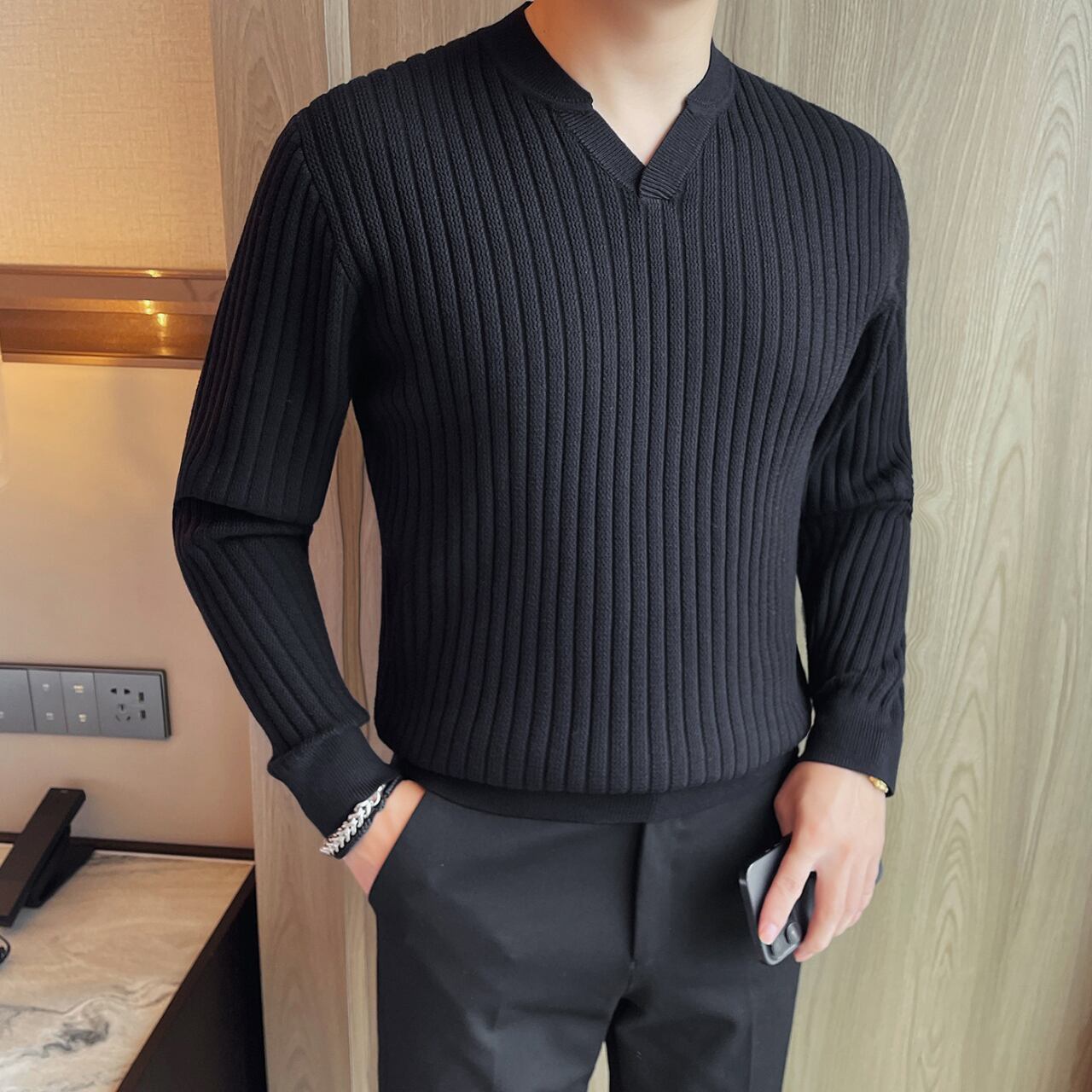 スタイリッシュ Vネック セーター 3色 11411