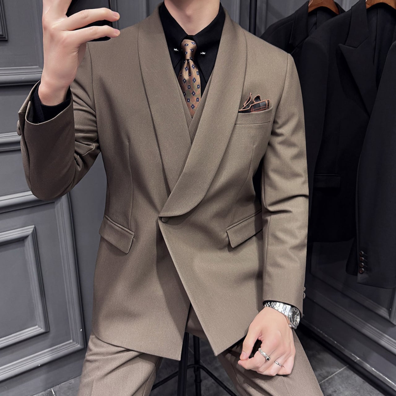韓国風スタイル スリーピース スーツ 2色 11418
